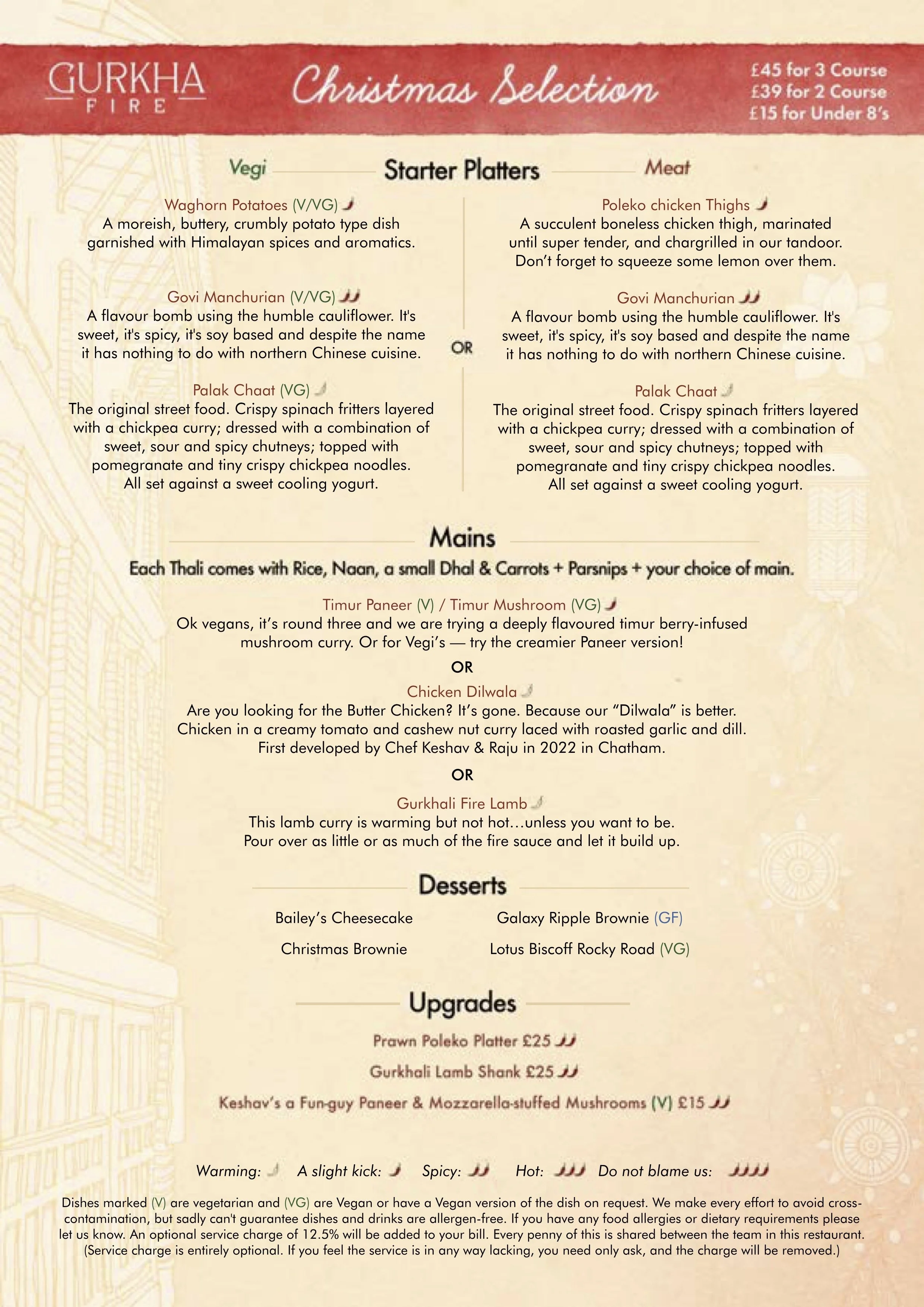 Please note that our mezzanine level is only accessible by stairs. If you have any accessibility requirements, please email us at reservations@gurkhafire.com before booking and we’ll do our best to accommodate you, subject to availability. Photography and filming take place regularly at Gurkha Fire. If you’d prefer not to be featured, just let a member of the team know.